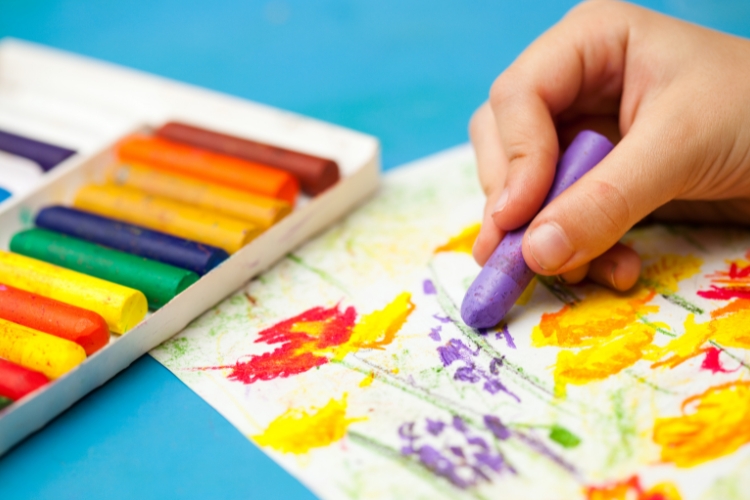 着彩やコラージュの授業。