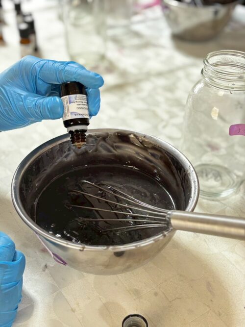 石けん生地をかき混ぜるときは、皆さん和気あいあいと